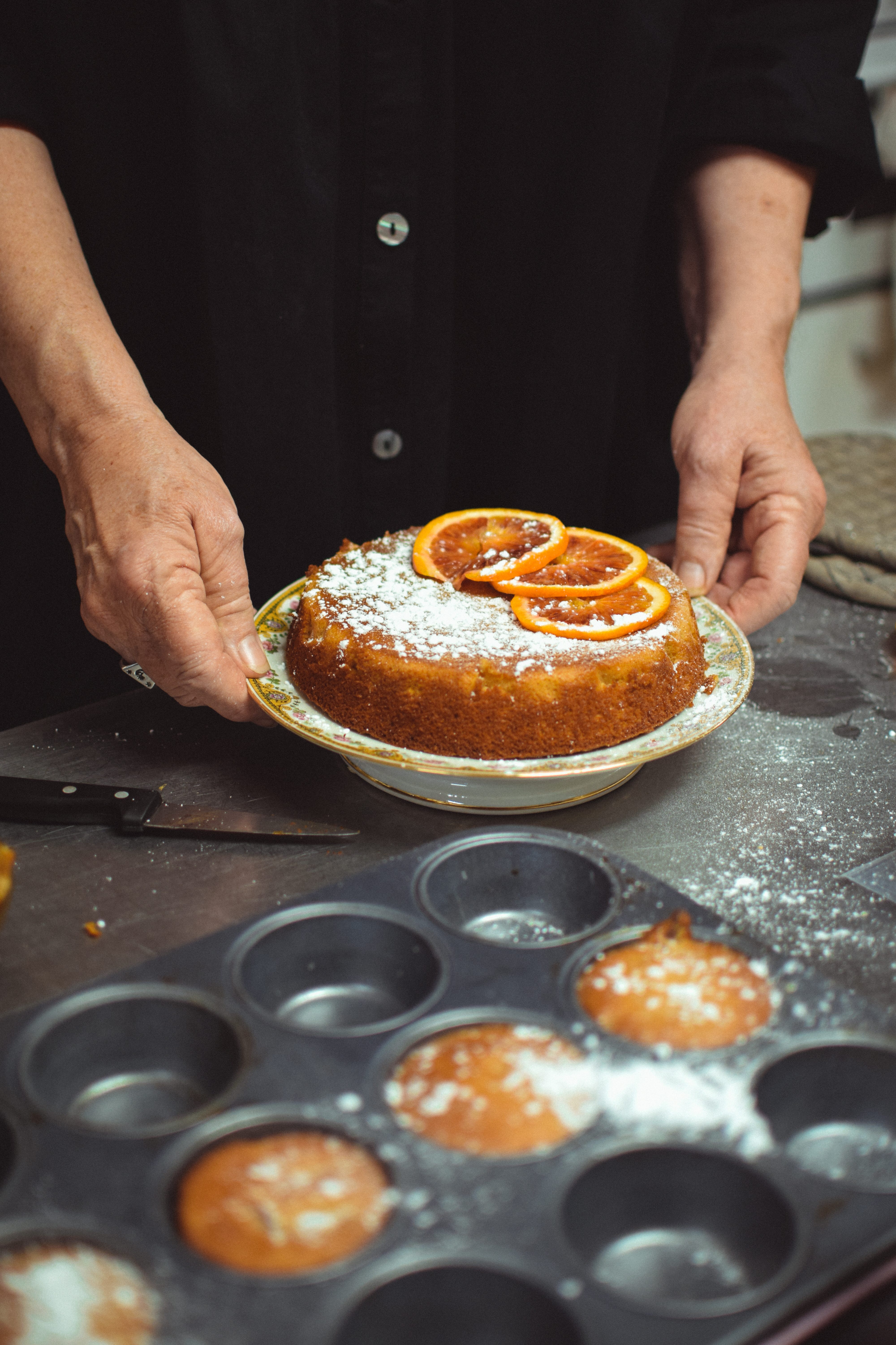 Adapting Claudia Roden’s Orange Cake to what was at hand, time and ingredients, created a new pantry staple Intead of cooking 2 whole oranges, I substituted some home made orange marmalade. Preheat oven to 170’C / 325’F.